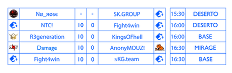 4.8. A final e semifinal será MD3, com veto de mapa, onde cada equipe vetará um mapa de forma alternada, e os 3 mapas que restarem no final serão jogados. Mapas disponíveis para Veto: Deserto, Fábrica, Base Nuclear, Estação, Cidade Deserta Ocidental, Solar Houghton e Ponte Levadiça.
